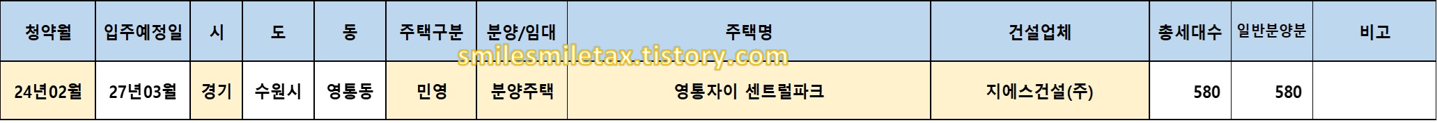 영통자이 센트럴파크 분양가, 평면도, 입주자모집공고문